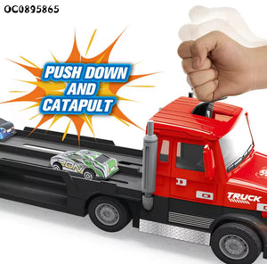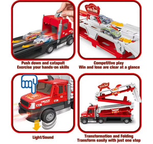 Multi-Function Design: The truck isnโt just for transportโit opens up into a race track or launch ramp for thrilling car races.