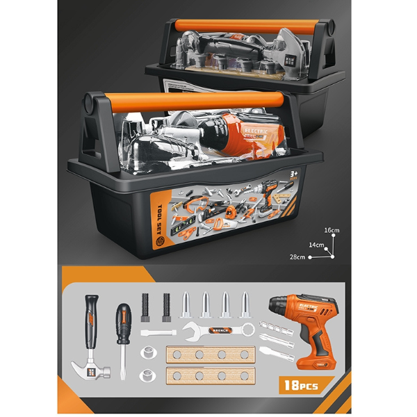 Working Electric Drill: The star of the set is the realistic, battery-powered Electric Drill, complete with changeable bits, giving kids a genuine feel for power tools in a safe format.