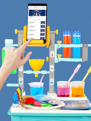 Digital Integration: A phone/tablet holder is integrated into the rack, allowing children to follow digital instructions, videos, or conduct research alongside their physical experiments.