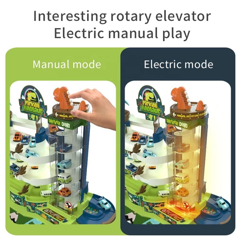 Roar into adventure with the ultimate prehistoric parking garage! This massive, multi-level Dinosaur Track Car Building playset combines thrilling vertical racing, realistic parking, and engaging dinosaur figures for endless creative play. It's the perfect toy to bring the world of dinosaurs and cars together!