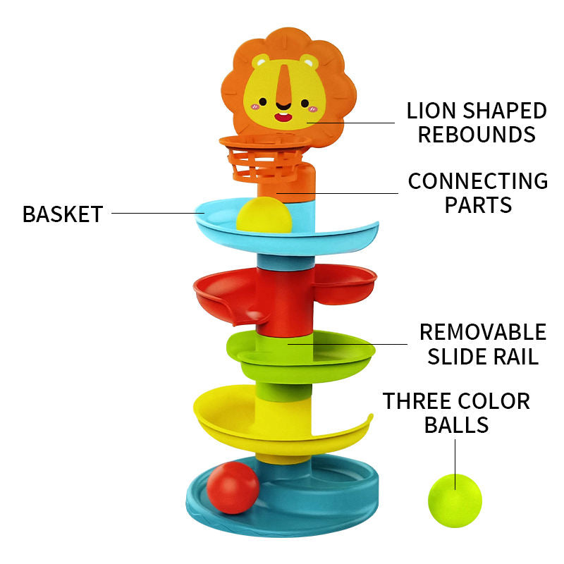 Exciting Ball Drop Action: Simply drop the included colorful balls into the lion's head at the top and watch as they tumble down the spiraling ramps, creating a fun, mesmerizing effect.