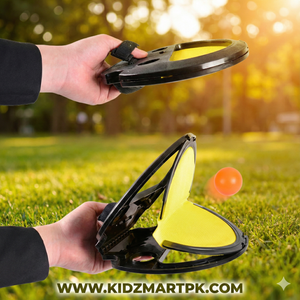 Funny Catch Shot Throw & Catch Ball Game Toy for kids. Playing a catch ball game with your little child is the best way to spend your precious time. Enhances eye-hand coordination and fine motor skills in growing children. Easy to play and master, this game offers a fun and challenging experience. Let your child explore a new way of playing tennis with this mini fun shot game. Simply wear the provided discs on one hand and let the game begin!