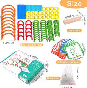 - Improve your memory skills and spatial awareness with our Wooden Sticks and Rings Pattern Matching Puzzle Cards.